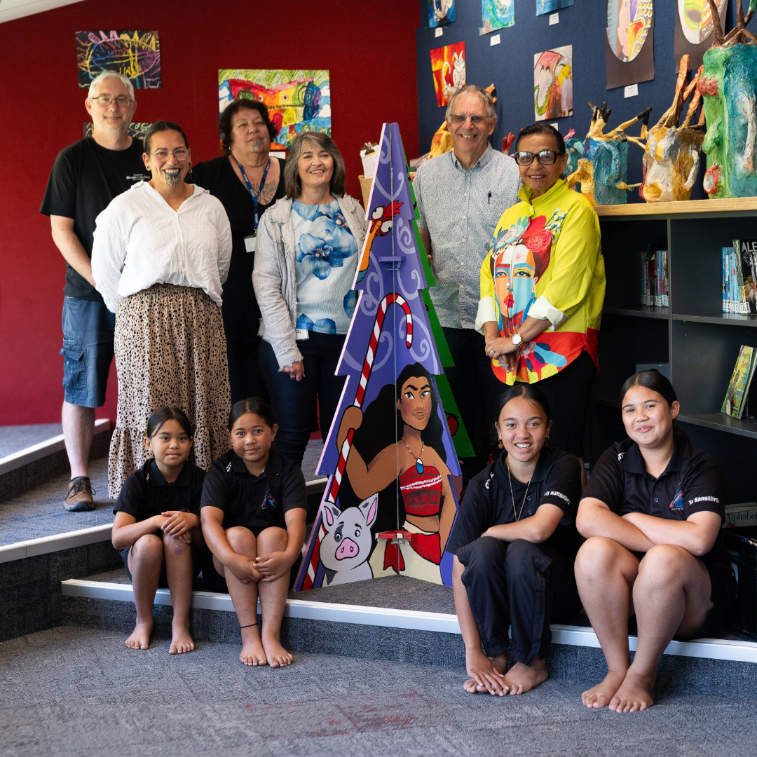“Our community gives so much to our tamariki. Painting these trees is our way of returning that aroha. When our tamariki see their artwork displayed in town, it’s huge for them – it creates a moment of pride and belonging.”